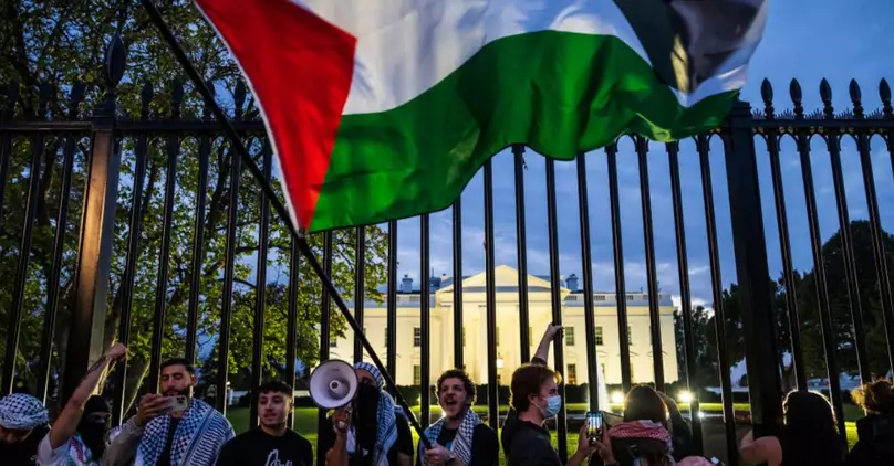 A White House fence was vandalized Saturday night as pro-Palestinian protesters shook the gate to one entrance to the executive mansion. Some chanted obscenities about President Biden.