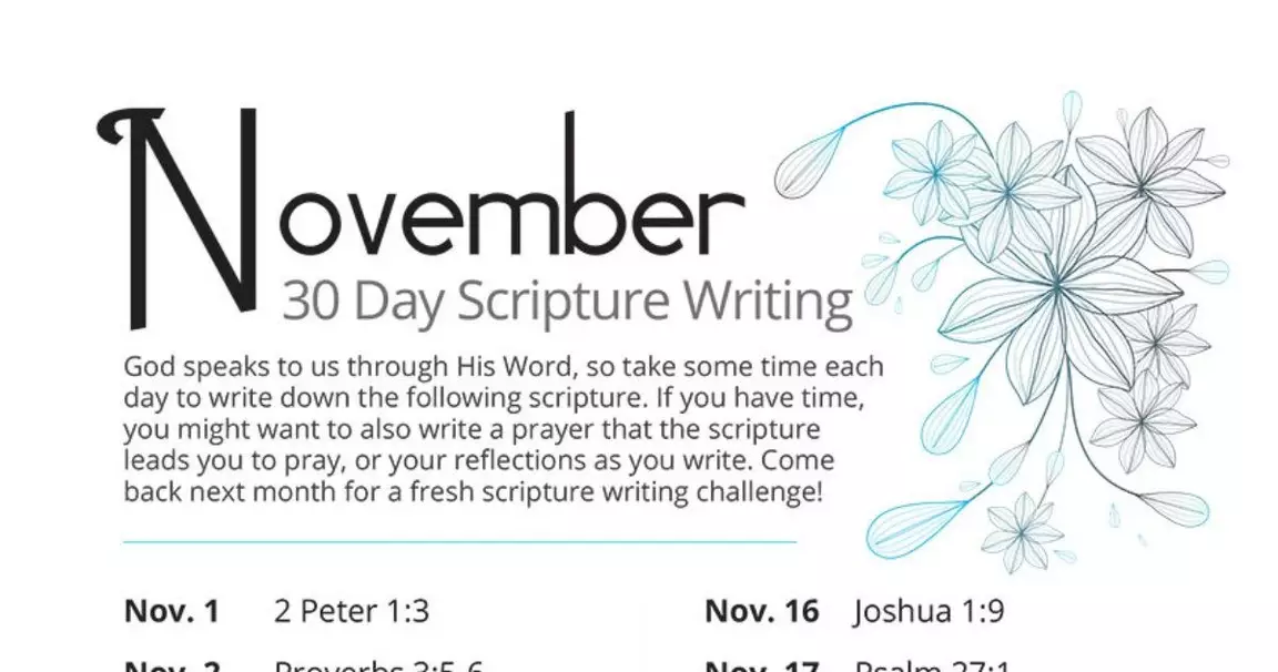 November Scripture Writing Plan Updated Nov 07, 2016 DOWNLOAD NOW Share this Originally published Wednesday, 19 October 2016.